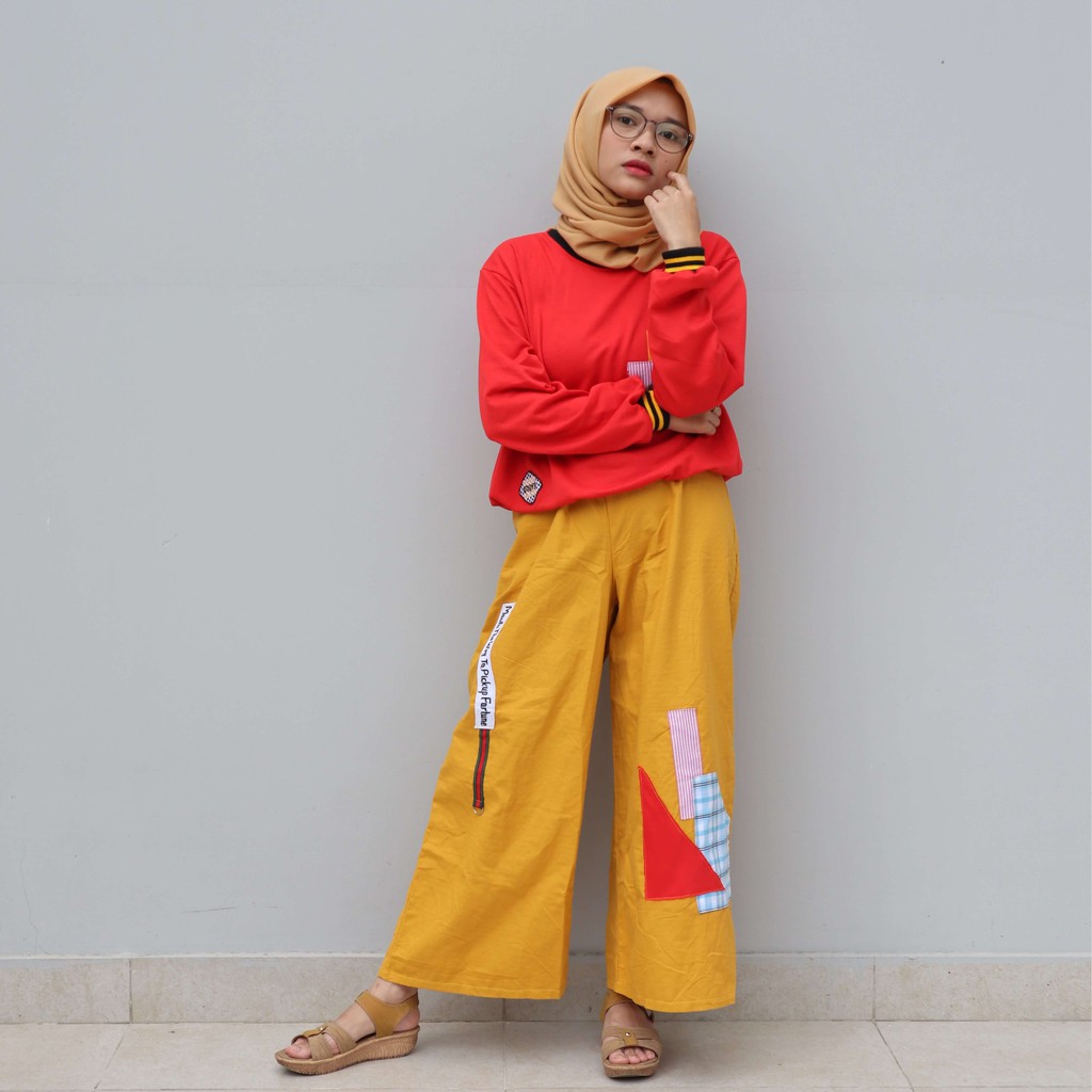 Setelan Wanita Baju merah dan kulot kuning Shopee Indonesia Sumber : shopee.co.id